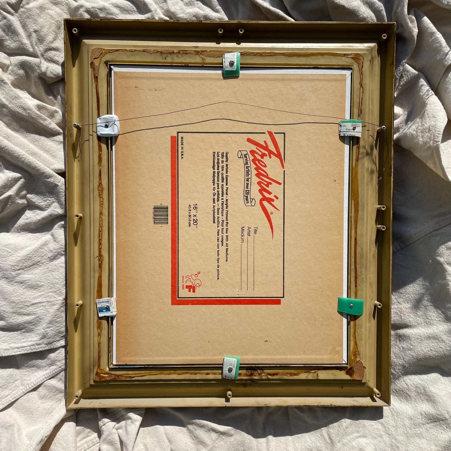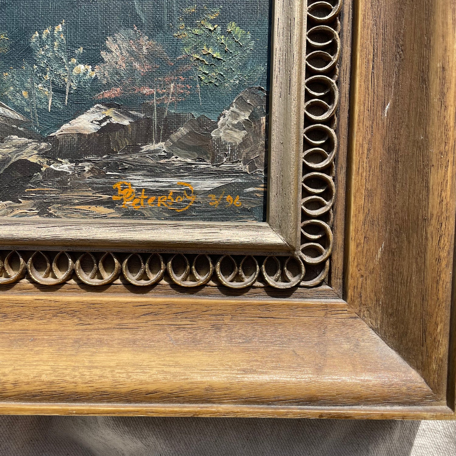 An orange sunset that takes your breath away. Cactus. Mountains. Blue sky. Original Art. Signed by artist Peterson. Dated 3/96.