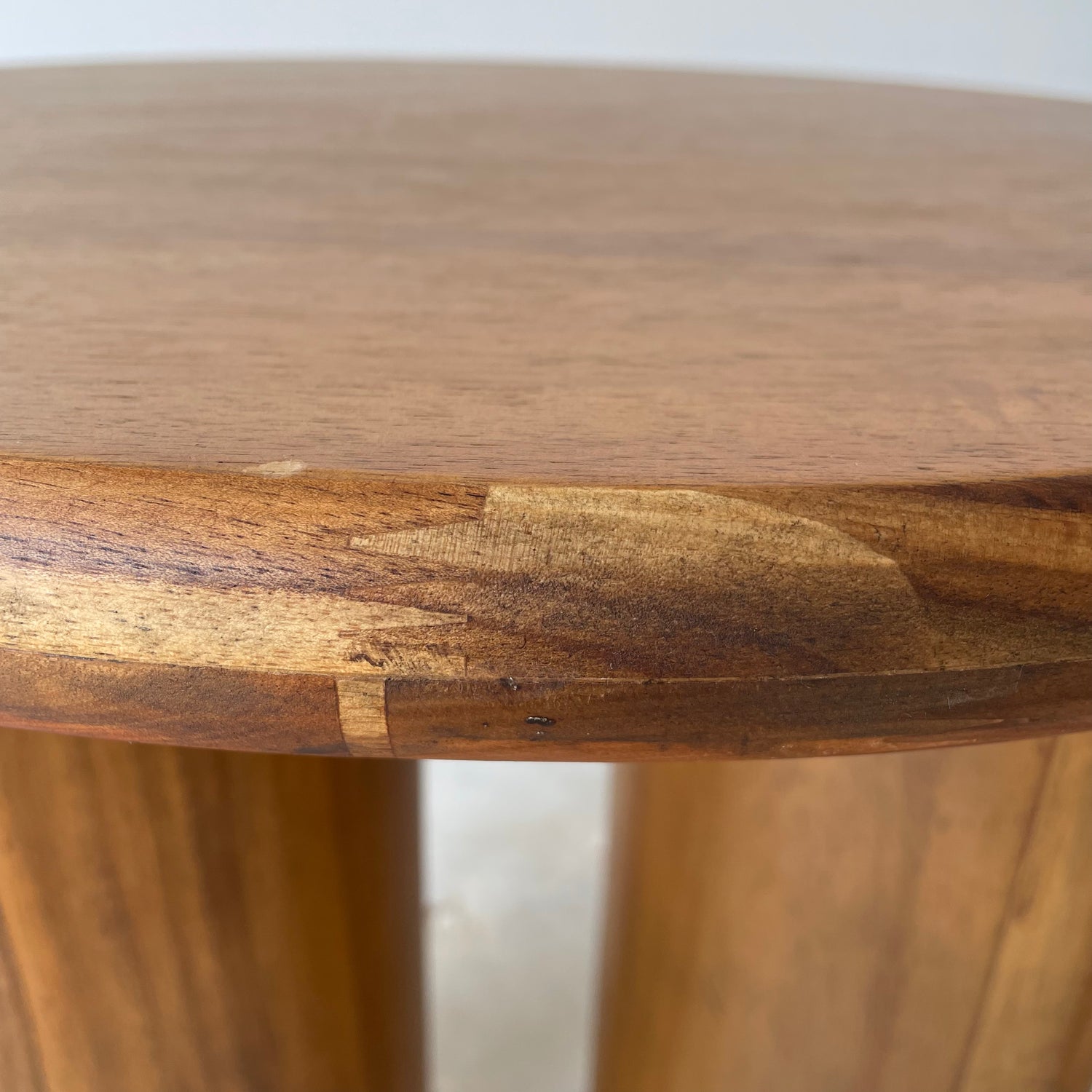 Sandy Acacia wood. Excellent craftsmanship in joinery. Uniquely modern. Rounded edges, wide crescent legs. 🌙 Took up close picture of a wood color variations and texture. Beautiful handcrafted process.Â
