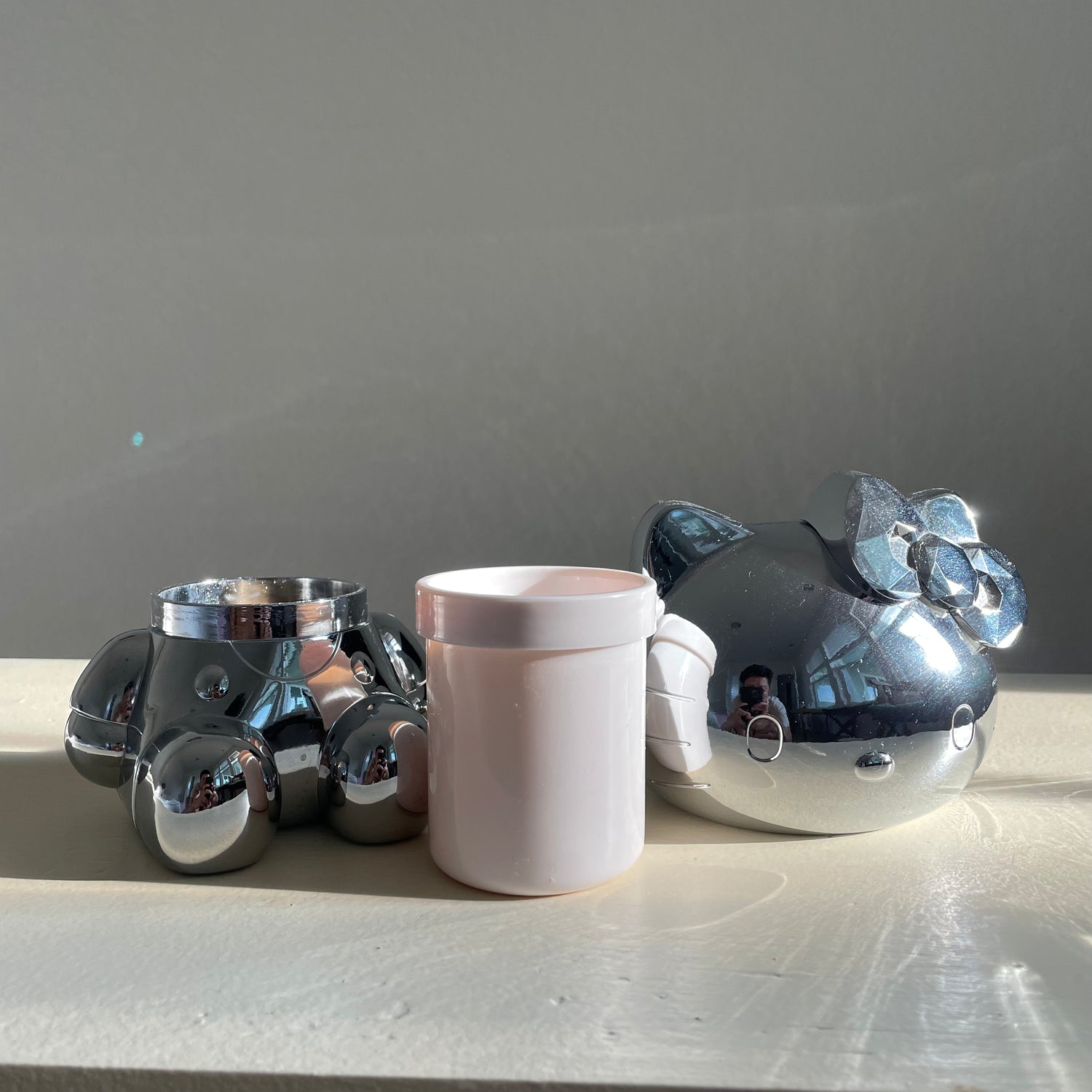 Hello Kitty secret container x Sephora. Use to hold your makeup brushes, jewelry, candy, love notes! Shiny chrome. No imperfections. App 6.5” tall.