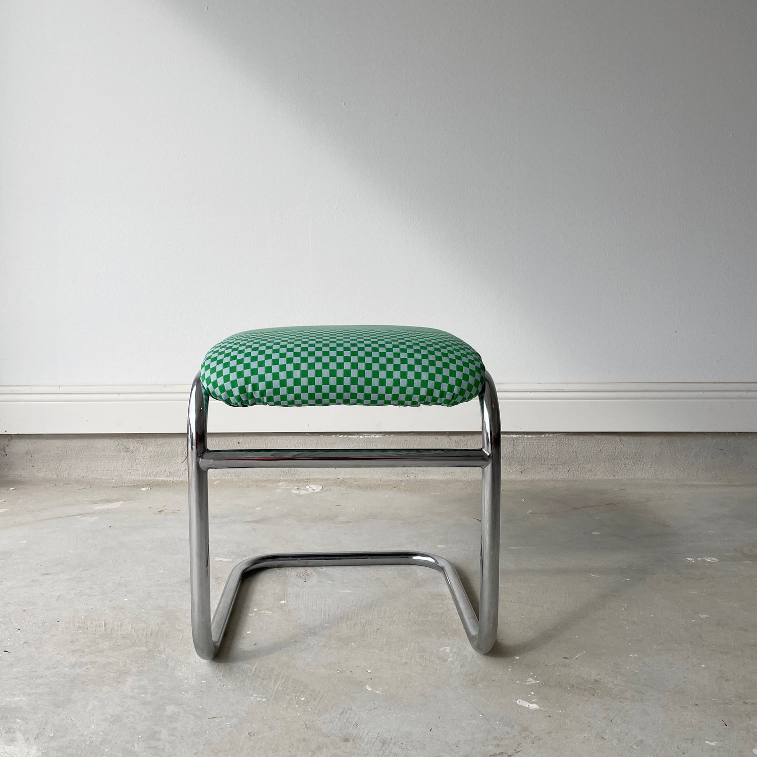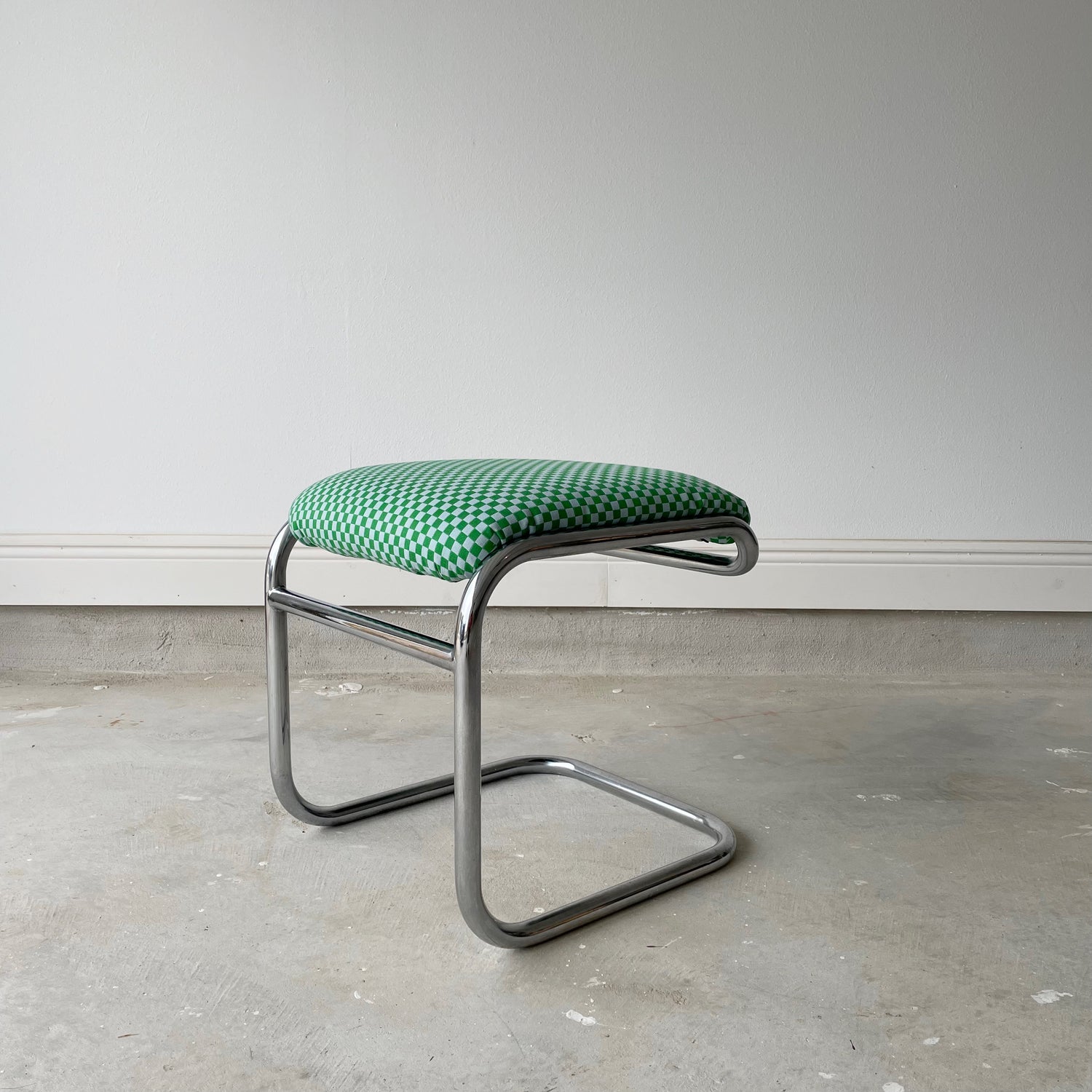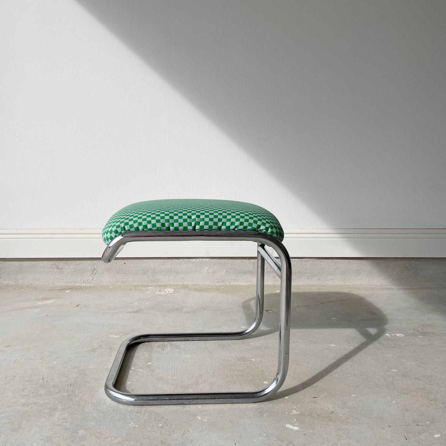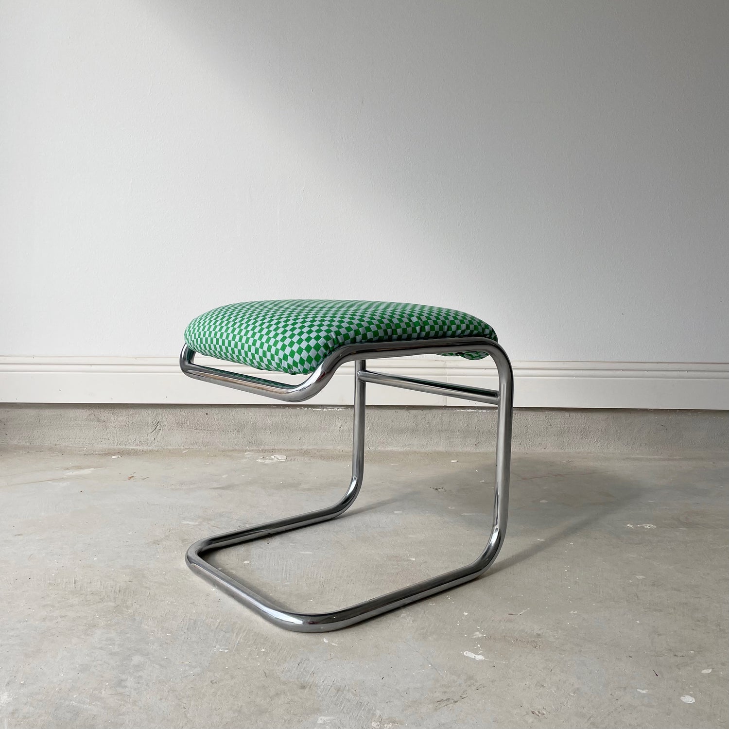 Mid-century modern cantilever tubular chrome footstools. Possibly Thonet-designed by Anton Lorenz. Sits well with Cesca Marcel Breuer chairs.