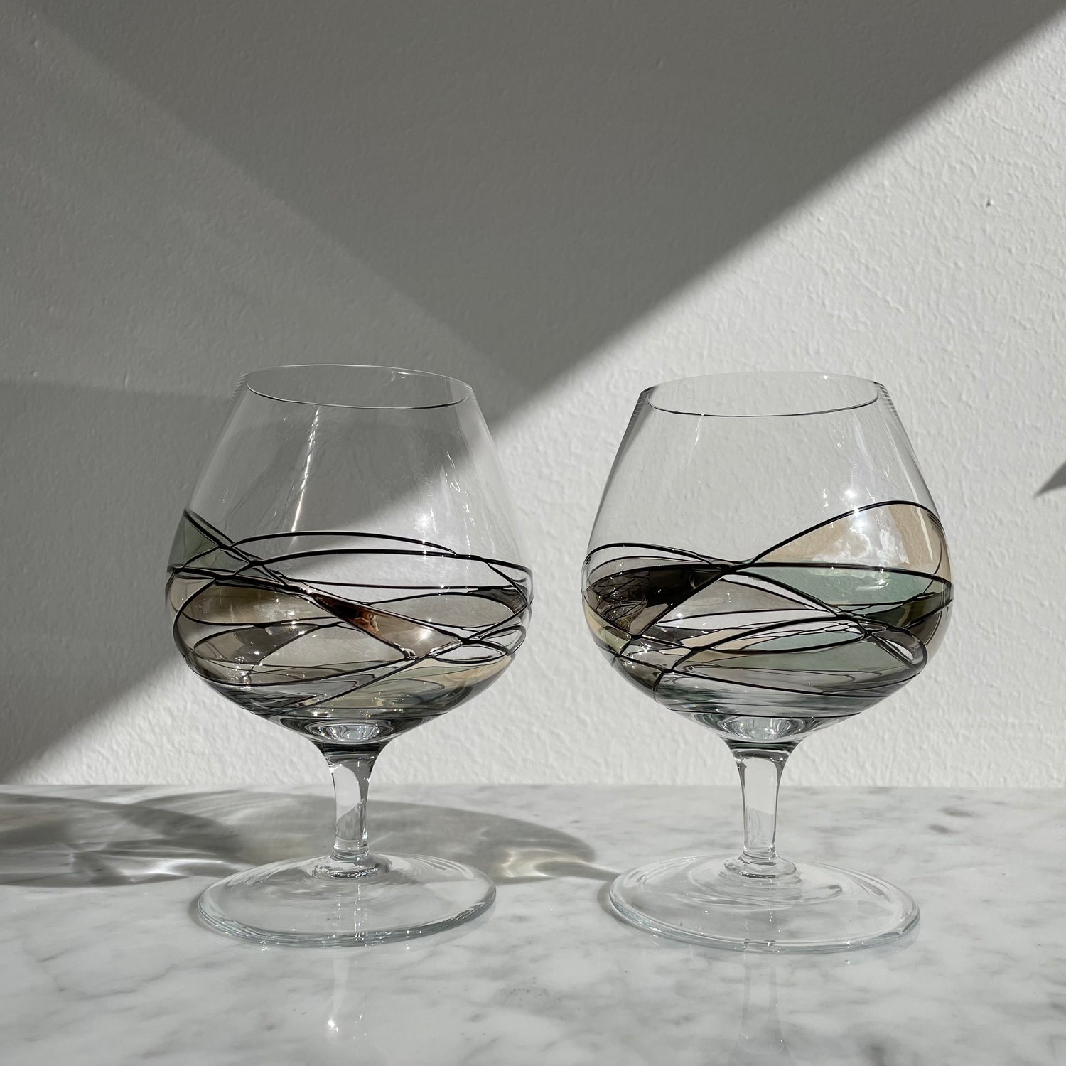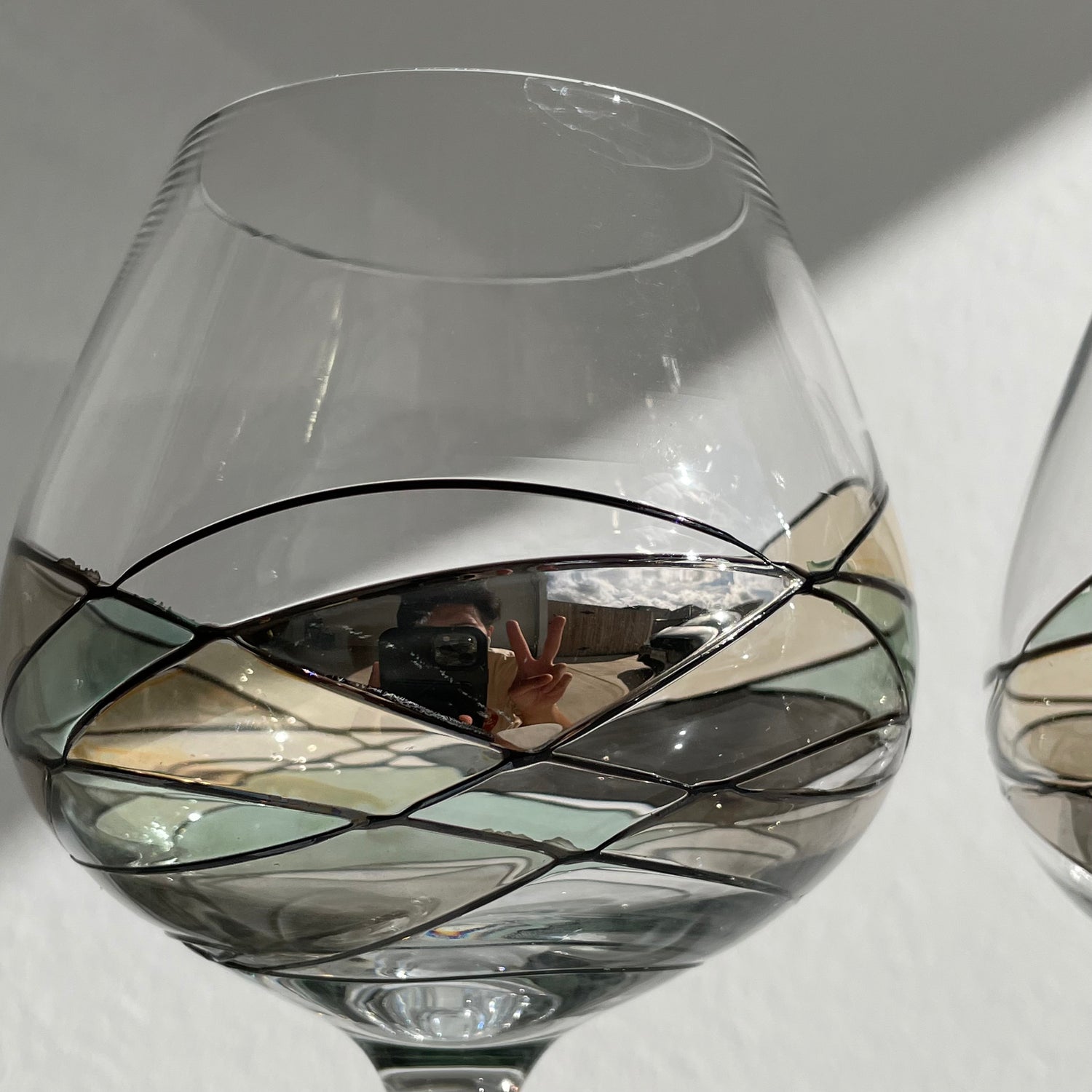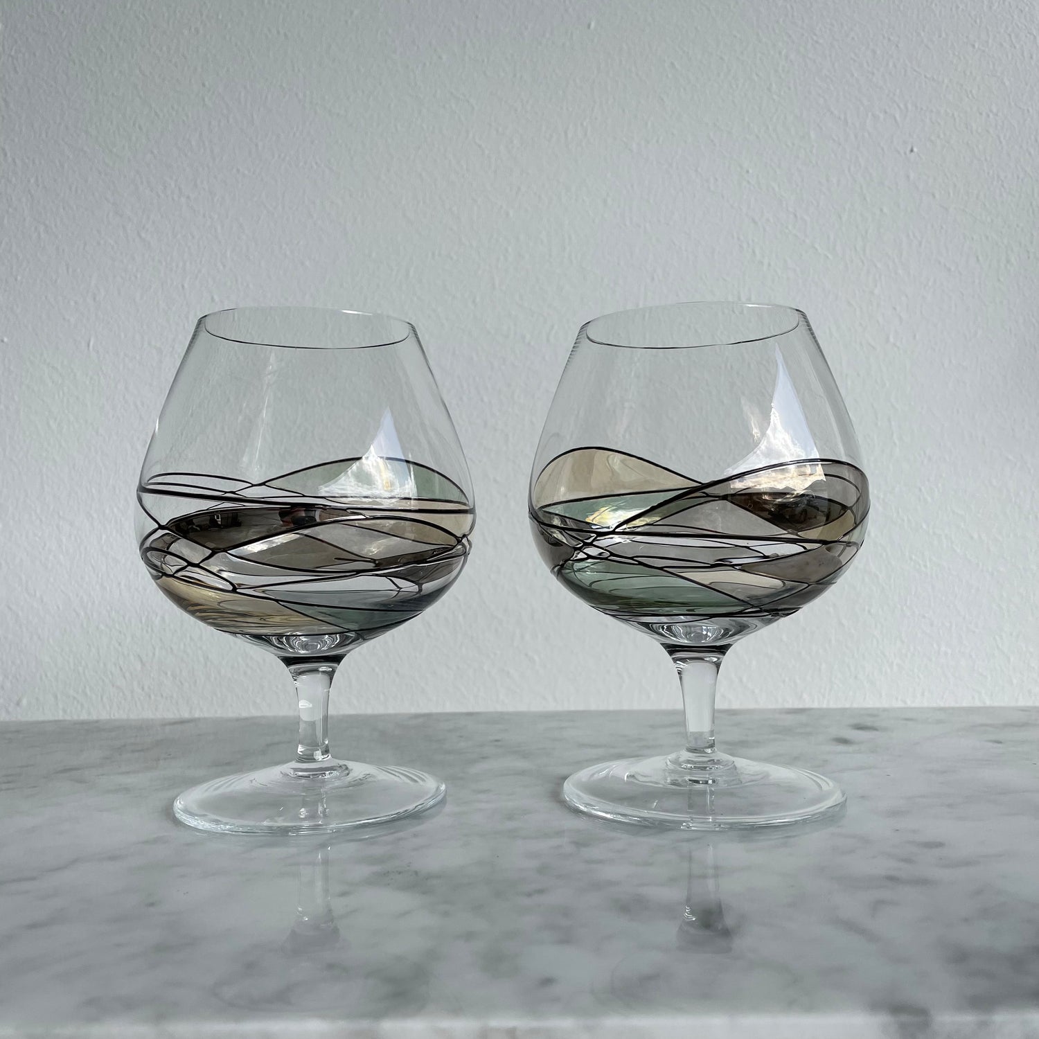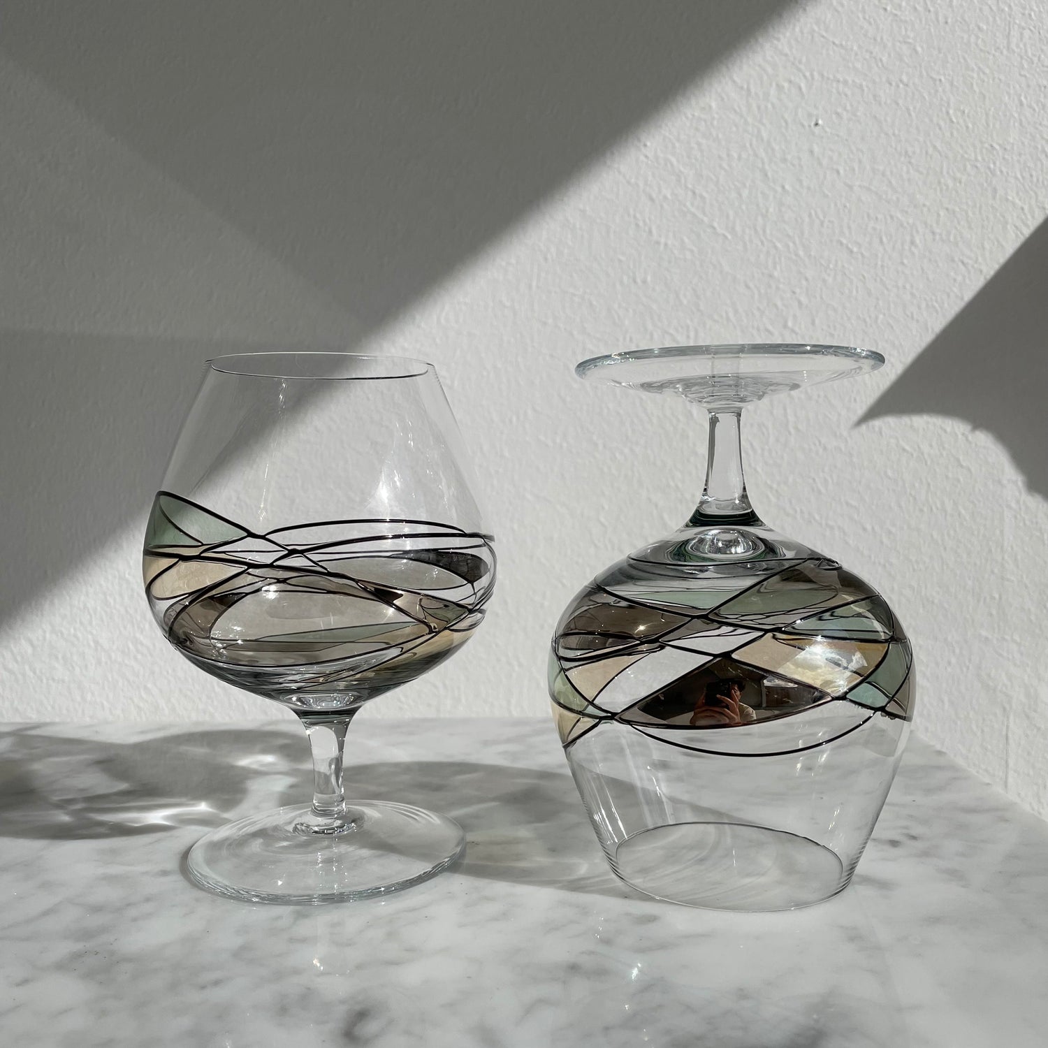 Hand Painted Mosaic Romanian Stained Glass Brandy Snifters x2