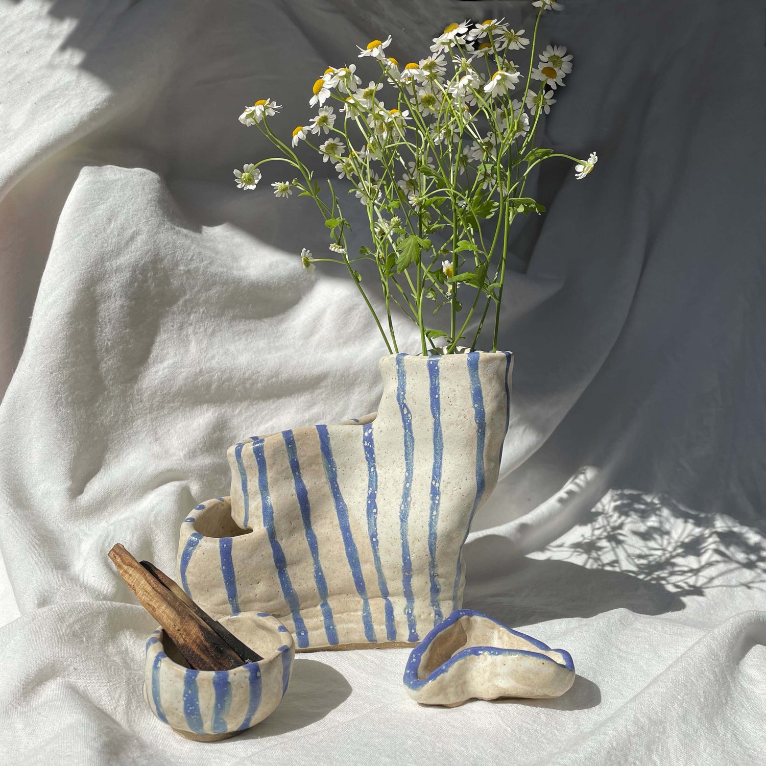 Feel the difference between a hand built pottery vs mass produced pottery. These are intentionally made to have variances. Organic shapes shatter the uniformity of perfection. Made by ONHSI at Pot Studio in Los Angeles by instructor Liz Navarro.