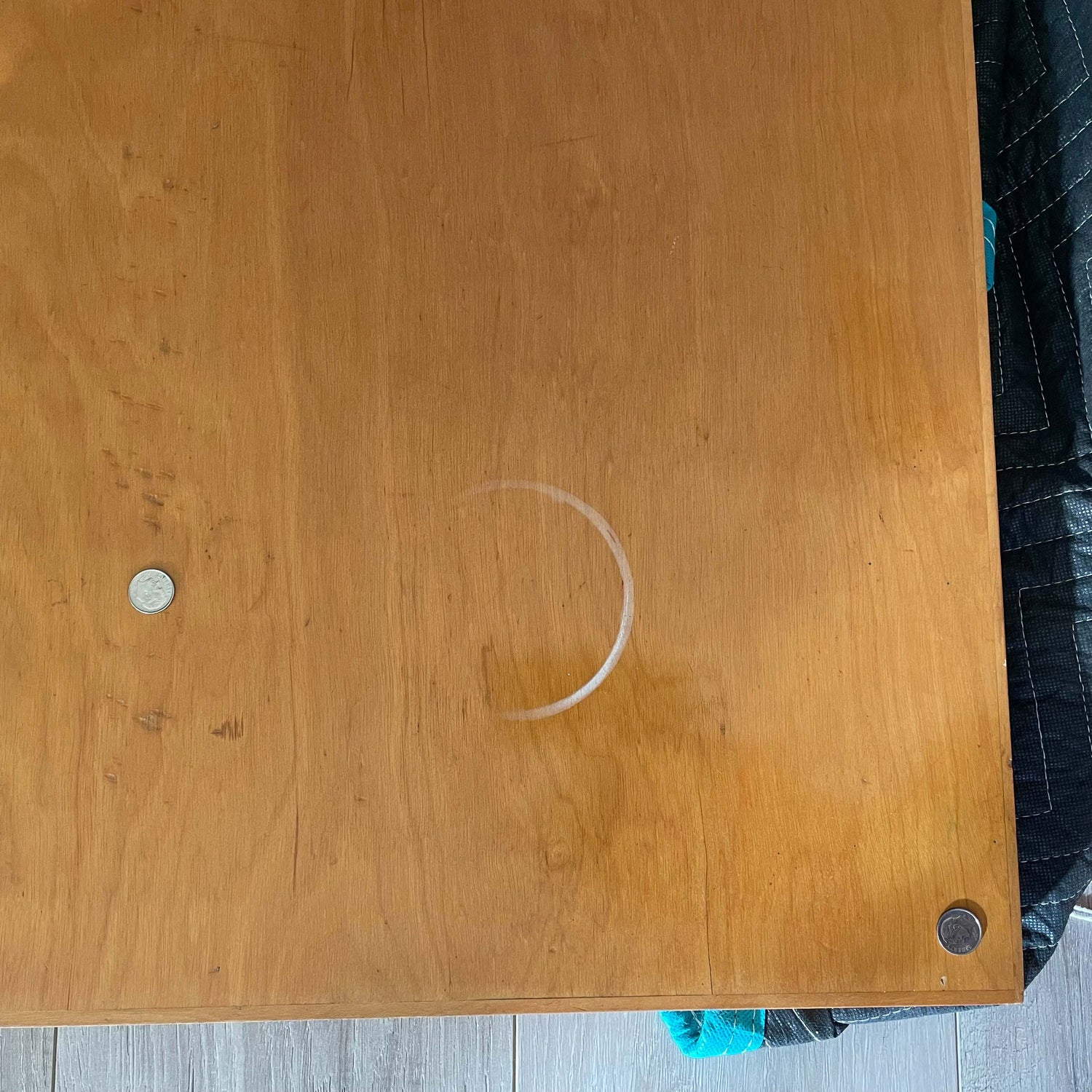 Price discounted so you can refinish to your liking or use as is. A simple dinner mat hides most flaws. Sold as is.