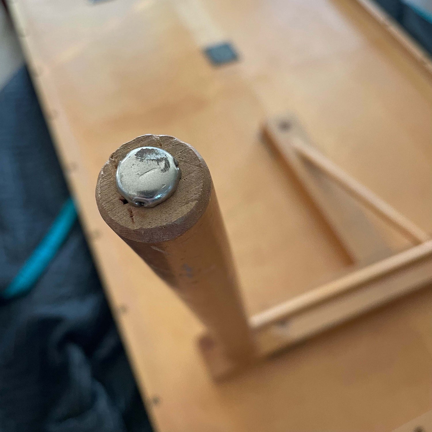 Legs: Four gracefully tapered, slanted legs. Original metal padding included. Legs are removable for easy transport.