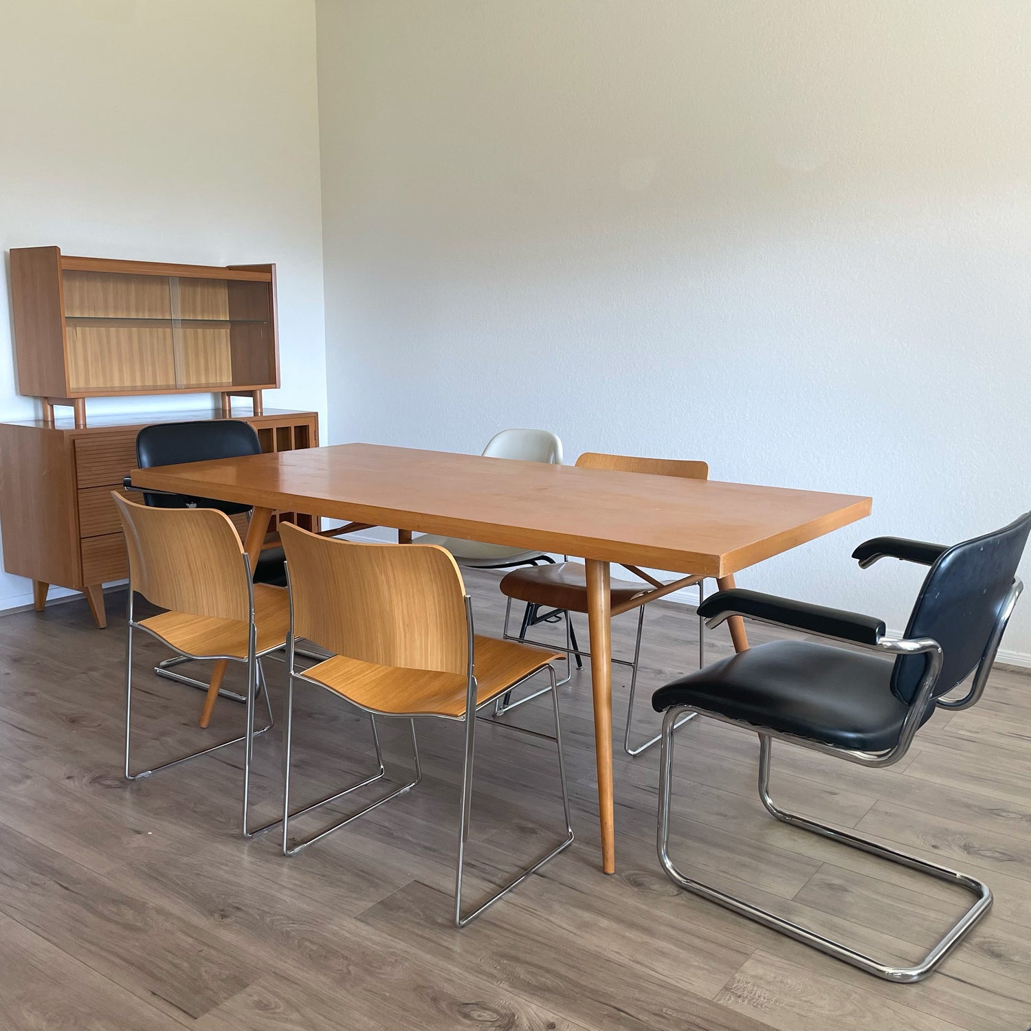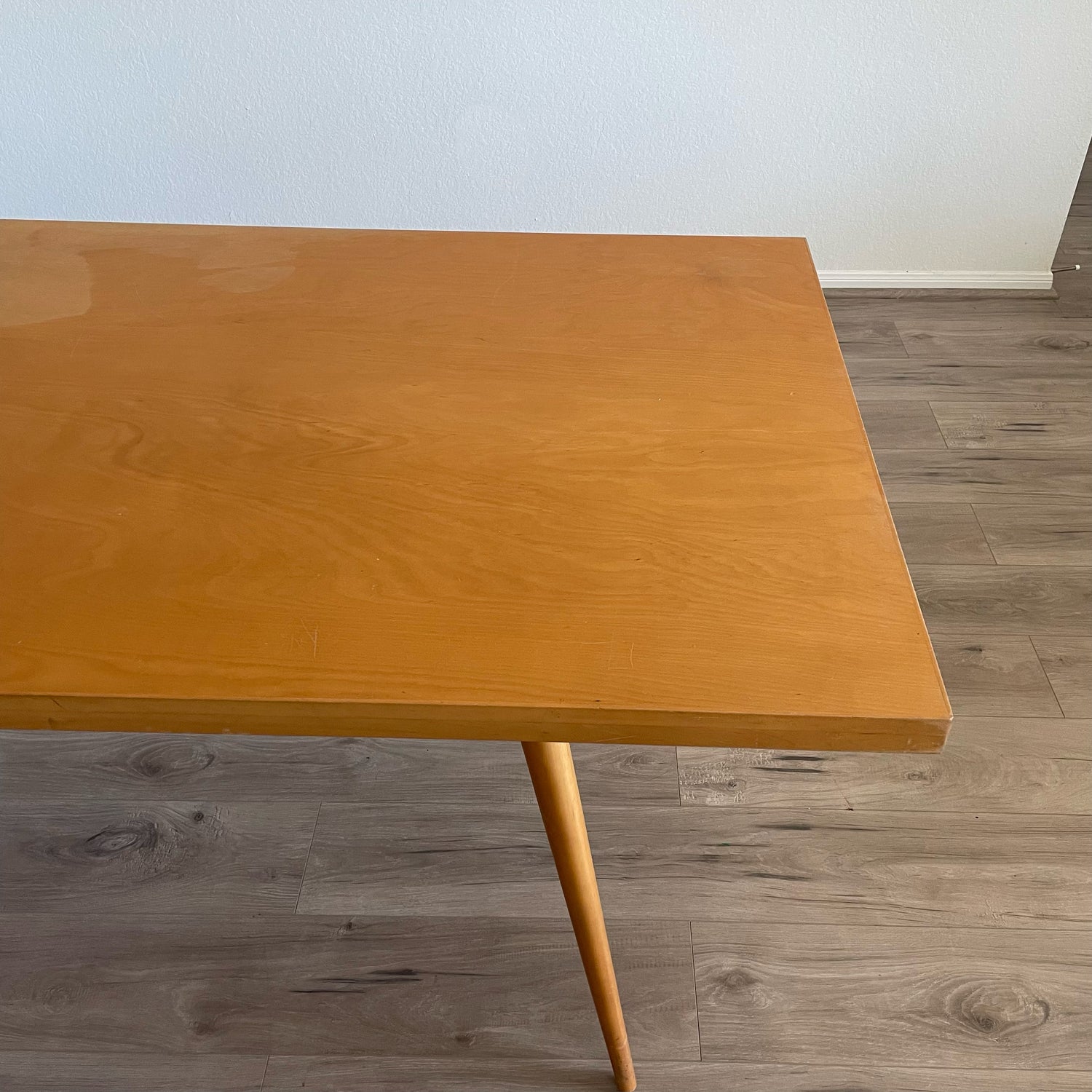 This iconic mid-century modern dining table is by Paul McCobb for Winchendon. It features McCobb's signature simplicity and organic form, making it a timeless addition to any space.