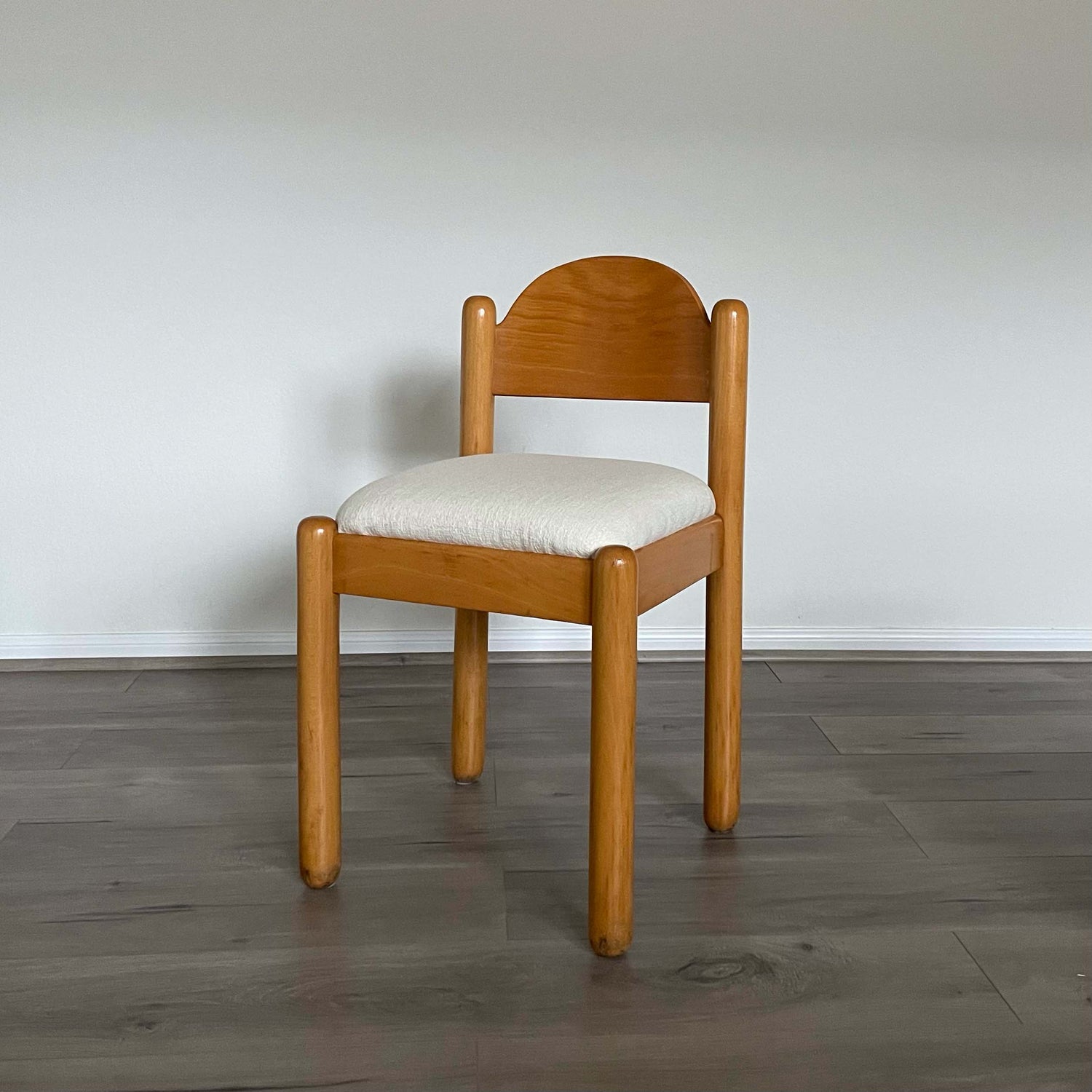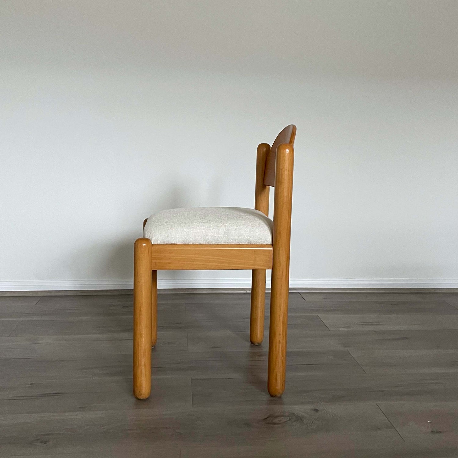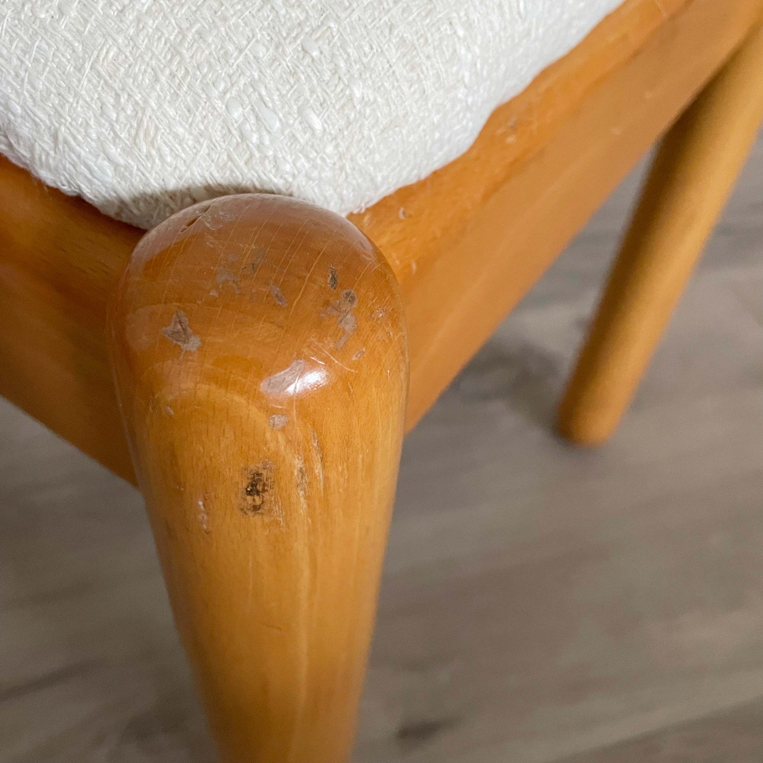 A 1970's vintage Hank Lowenstein Padova dining chair. Made in Italy. Features round authentic chubby oak legs, curved scalloped back and newly reupholstered seating + cushion.