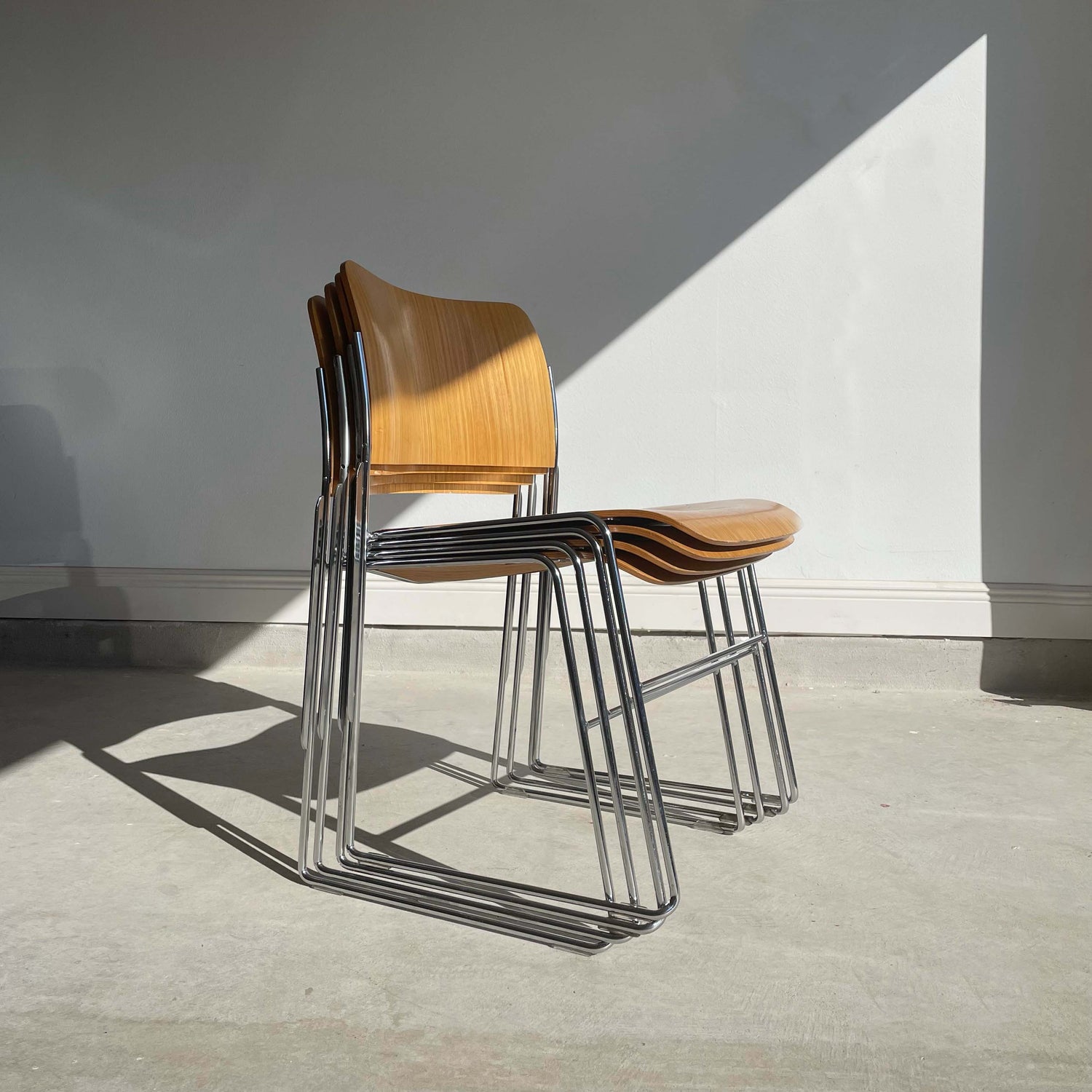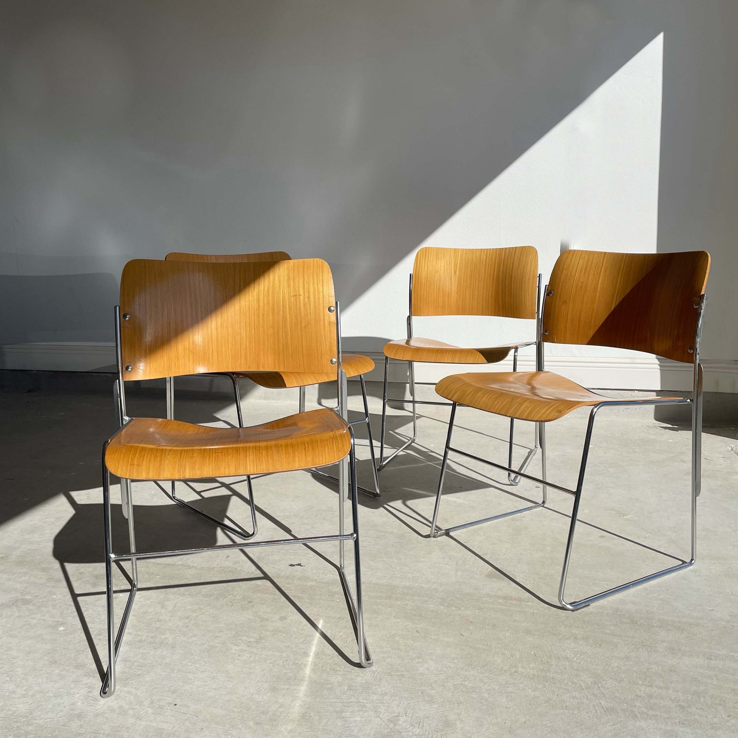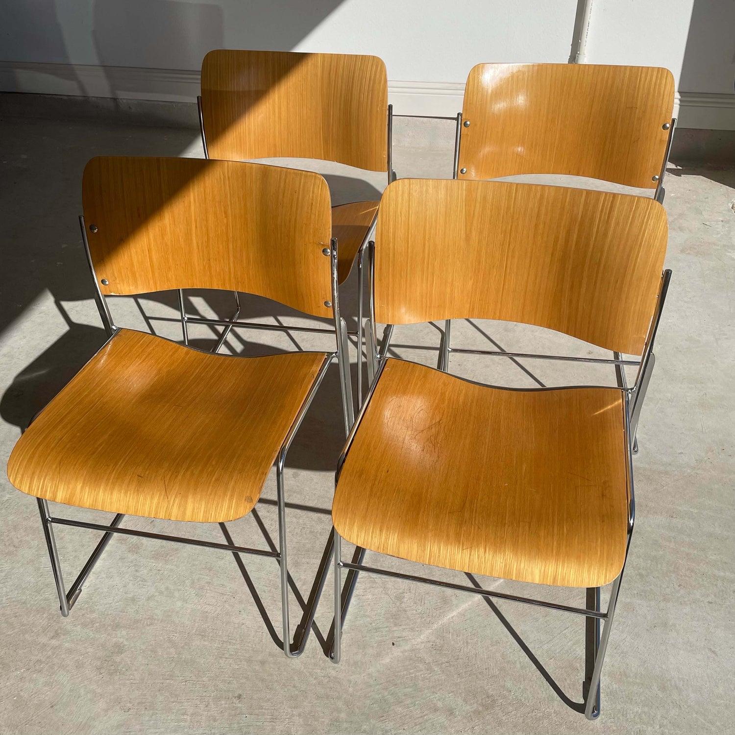 David Rowland 40/4 bentwood chrome frame stacking chairs - set of 4.