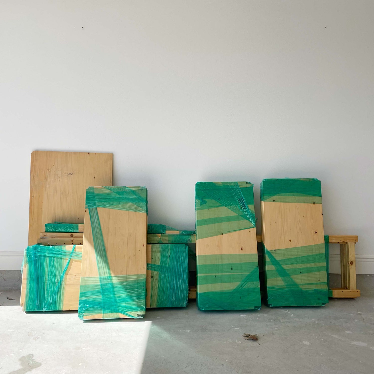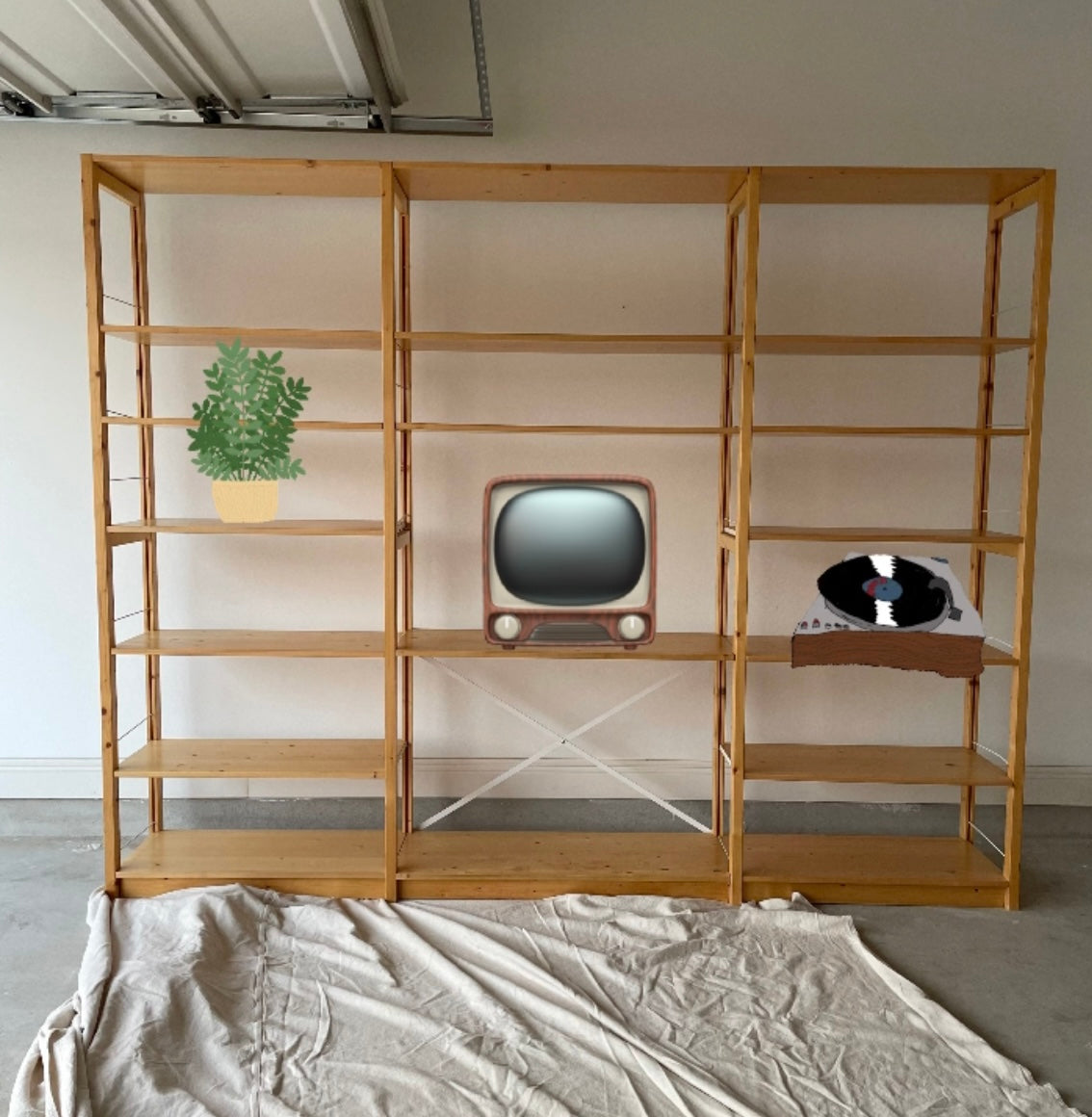 The pieces to this multifunctional shelving unit are infinitely adjustable and changeable. So easy to assemble and best of all they disassemble down into manageable flat sections for moving or storage.