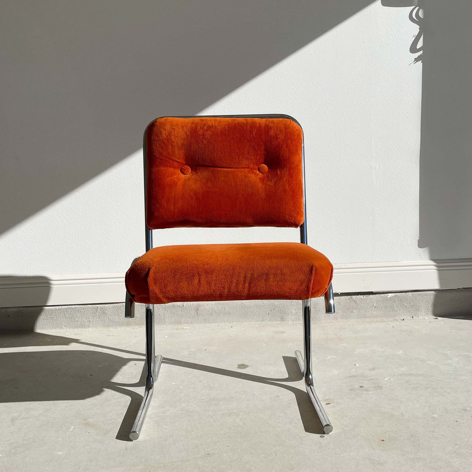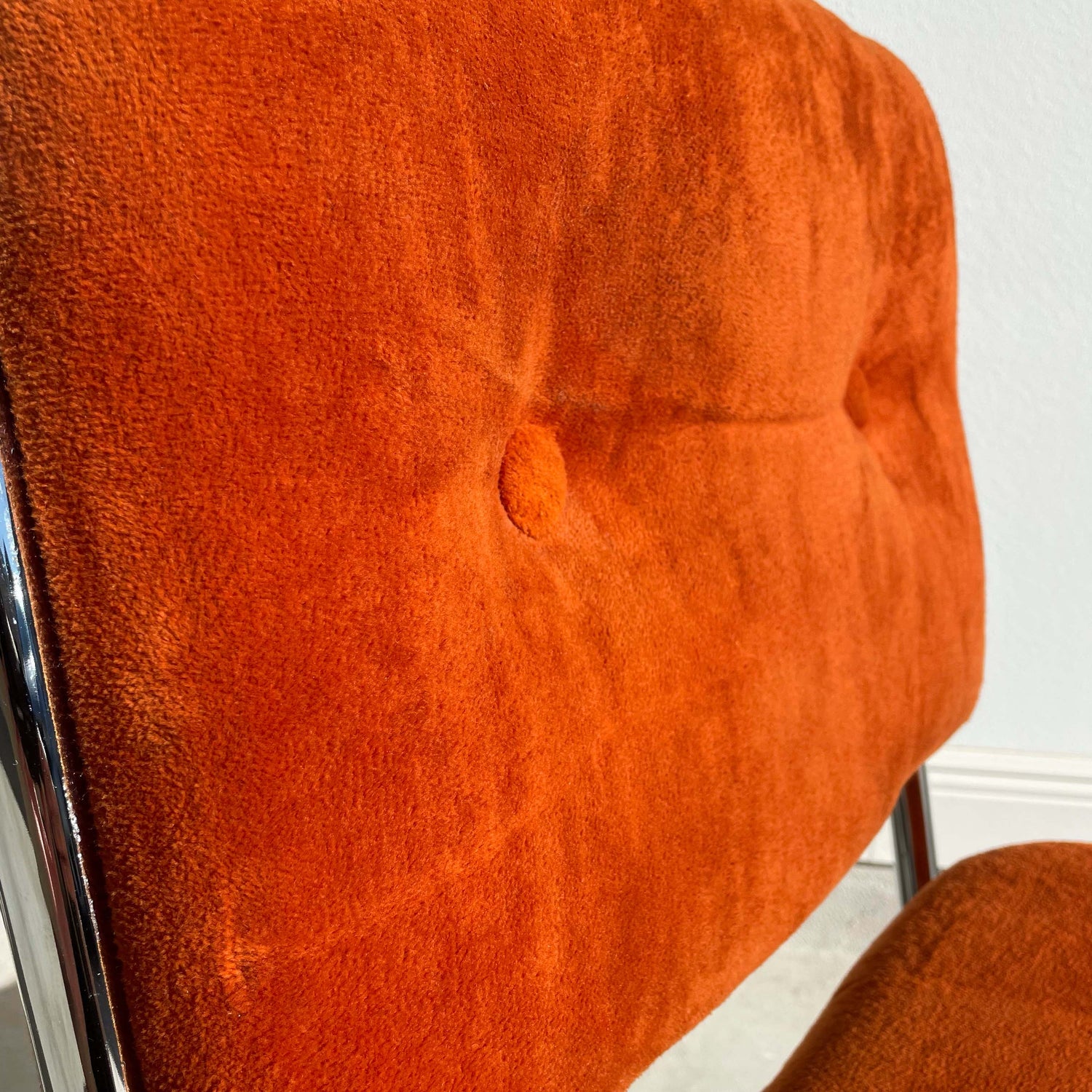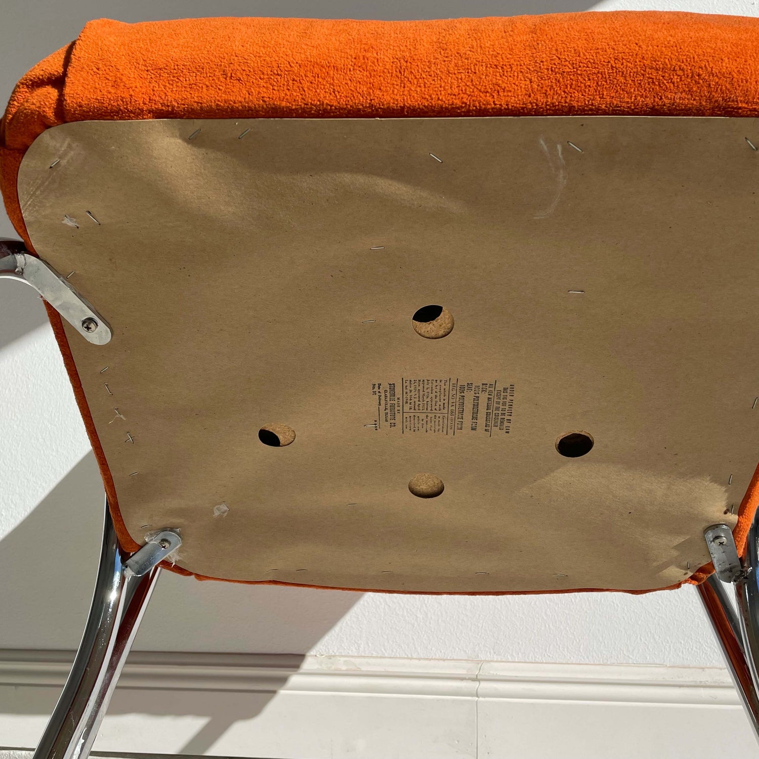 Authentic Stoneville Furniture chrome tubular dining chair from the 70s. Douglas of California style. Very heavy chrome frame. The upholstery color is rich & vibrant.