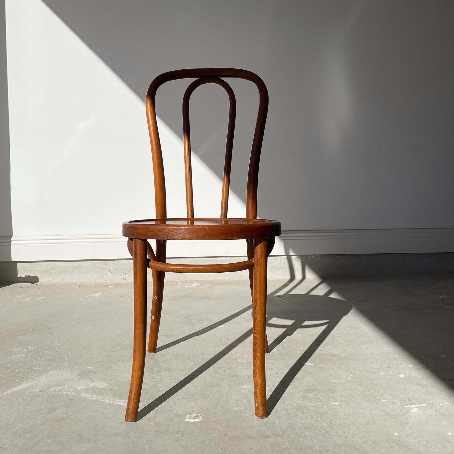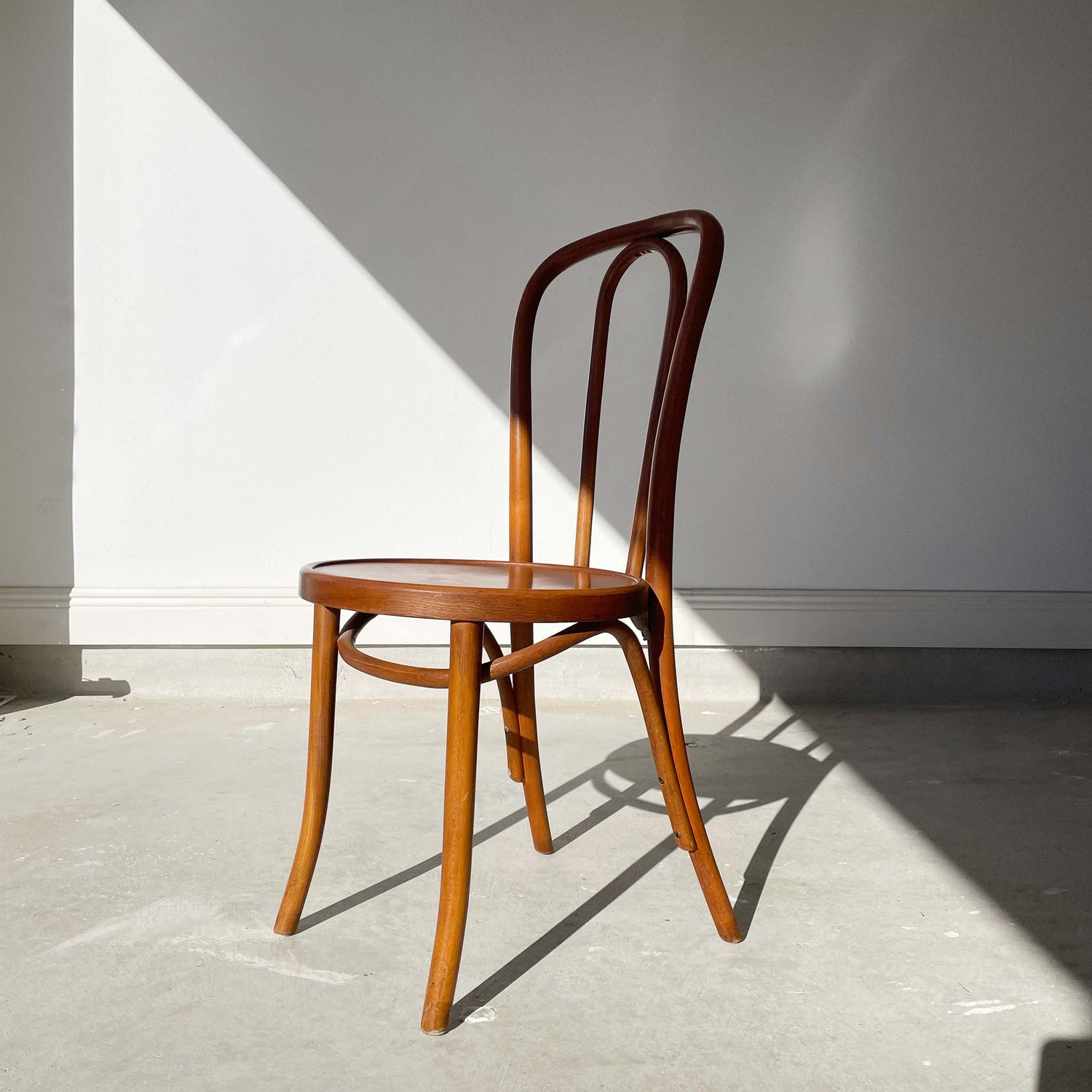Vintage No. 18 Thonet Bentwood Chair in a warm French Walnut finish. This chair is authentic and comes with original paper sticker. It was manufactured by Thonet in Statevsille, NC.