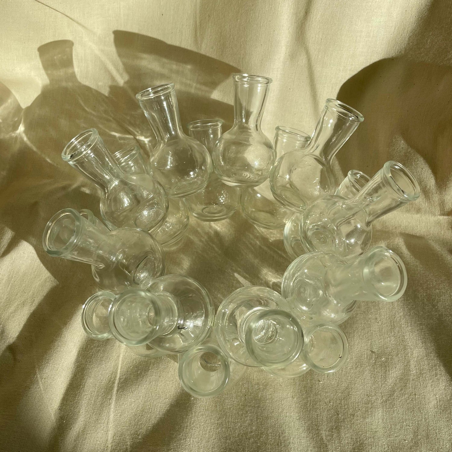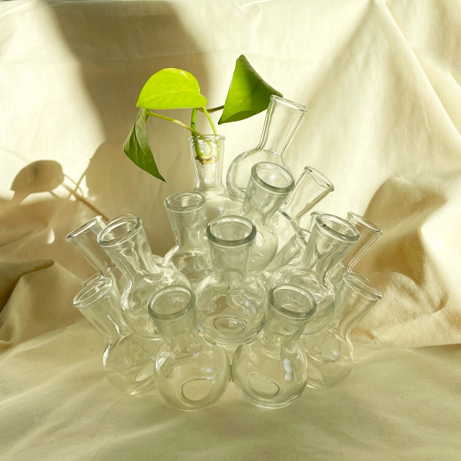Small bud stacks into large wreath portion. Use as propagation station or bouquet. Can be used separately too for two smaller looks. Stackable/cluster/joined glass vases.