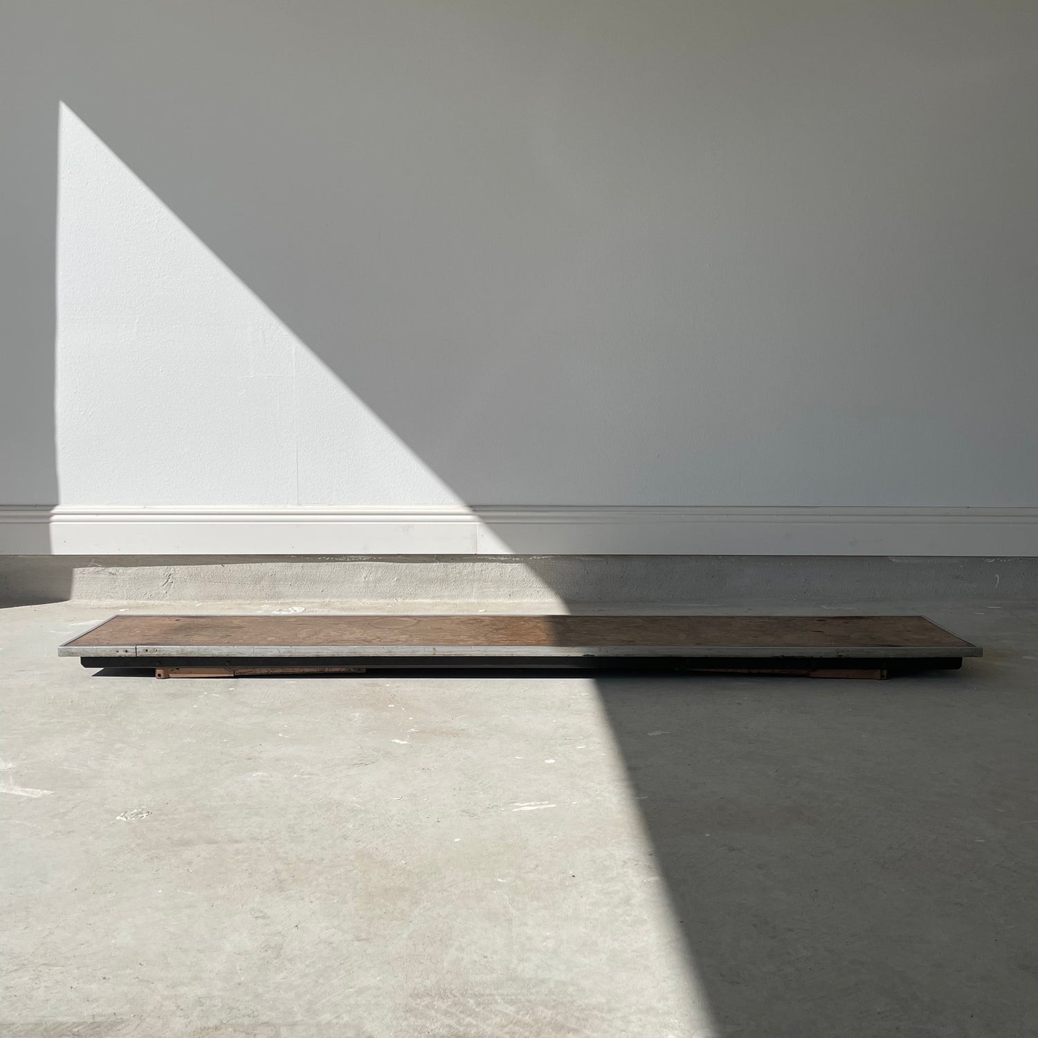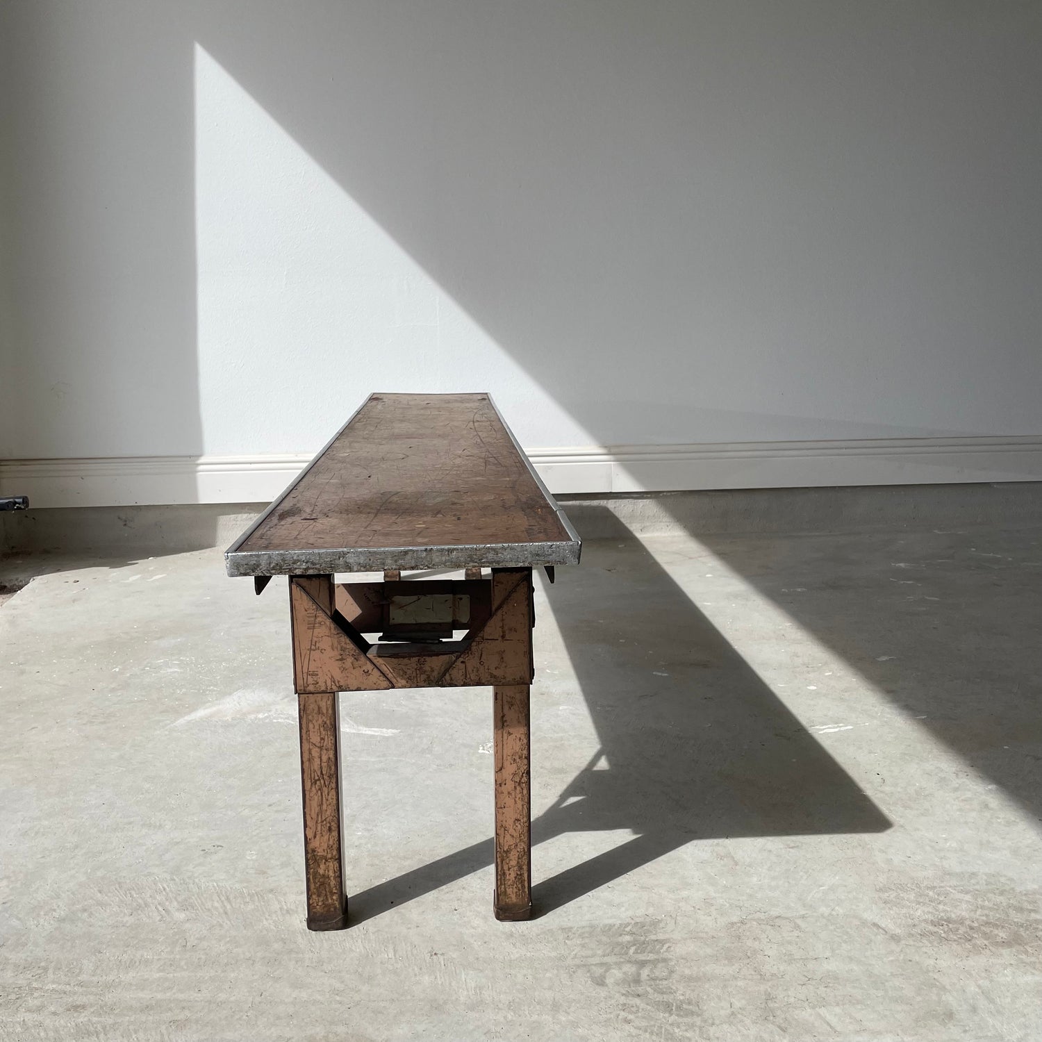 Slim profile, fits practically anywhere. Easy to move homes with, legs fold down. Even has little cushions on feet. Industrial, vintage, well loved, well traveled.