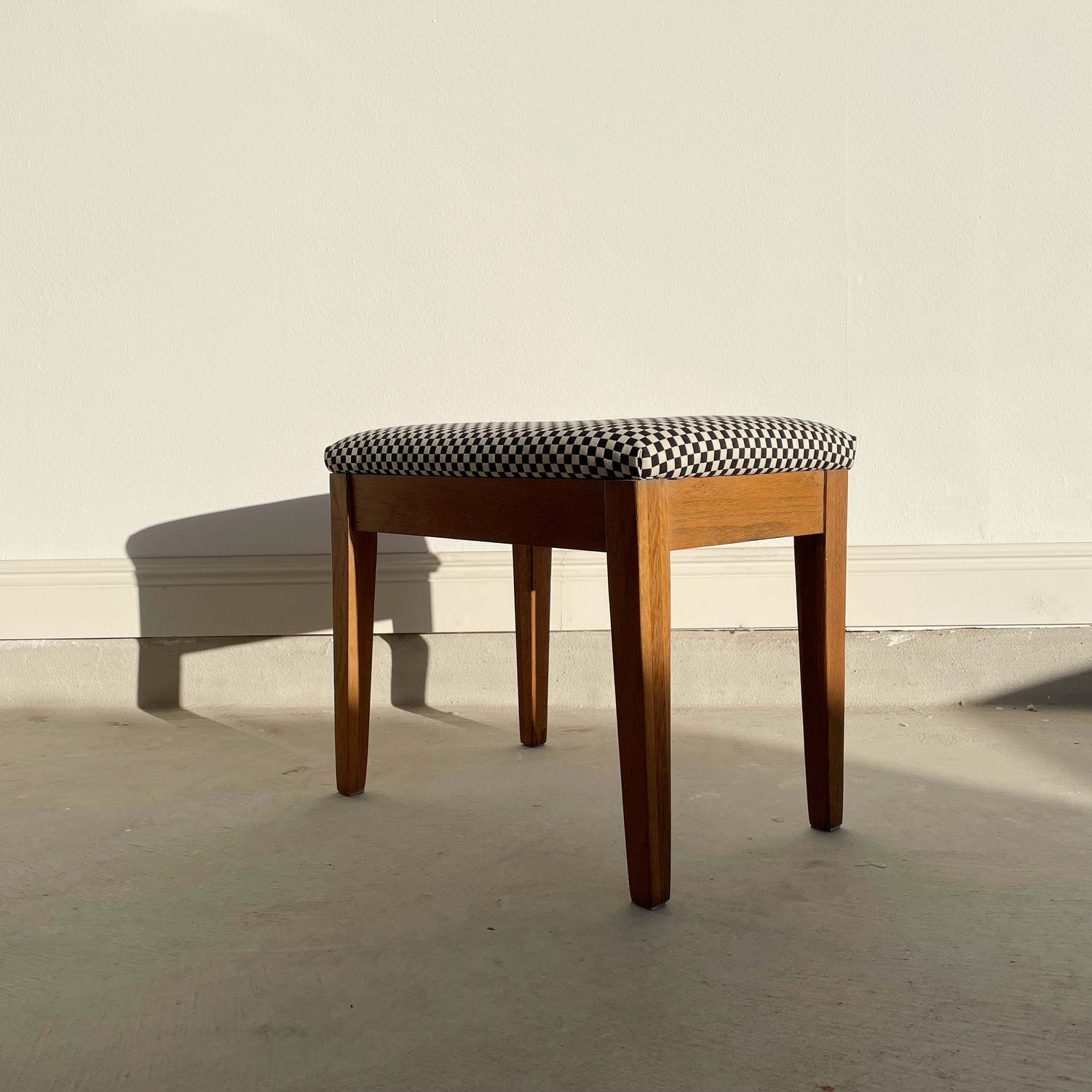 RE-MADE: Vintage Singer Sewing Machine stool newly reupholstered fabric. I use the same upholstery as Herman Miller, Eames Lounge Chair from Design Within Reach (DWR).
